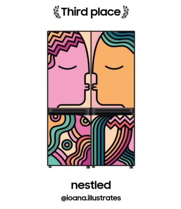 Trzecie miejsce zajęła Ioana Sabau @ioana.illustrates z projektem „nested”, który przedstawia dwie kolorowe postaci połączone ze sobą pocałunkiem. Sabau zainspirowało przekonanie, że jedzenie zawsze smakuje lepiej, gdy przygotowuje się je z innymi. “Wierzę, że jedzenie łączy ludzi, a czas, który spędzamy w kuchni może być czasem, w którym budujemy bliskie relacje” – wyjaśniła Sabau.