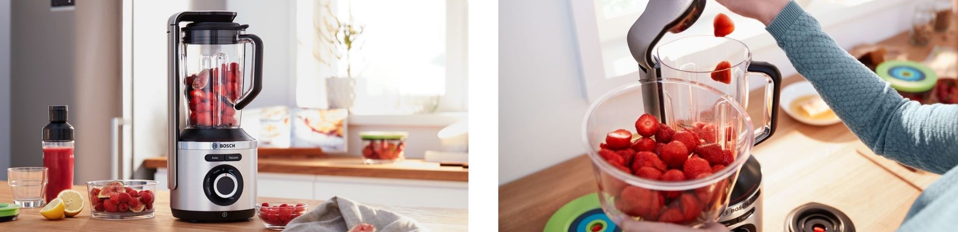Praktyczna butelka ToGo, pojemniki w dwóch rozmiarach czy woreczki próżniowe – Bosch oferuje gamę akcesoriów umożliwiających wygodne przechowywanie przygotowanych potraw. Nowością w ofercie są wielorazowe worki próżniowe z zamknięciem strunowym o dwóch pojemnościach: 1,2l oraz 3,8l. Wykonane są z wielowarstwowego materiału, co zapobiega przechodzeniu zapachów oraz wysuszaniu się żywności podczas przechowywania w lodówce, zamrażarce lub spiżarni. Próżniowe worki są kompatybilne z blenderem VitaMaxx.